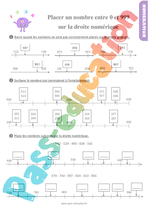 Exercices Correction : Primaire 2 Placer les nombres de 0 à 999 sur une droite numérique pdf