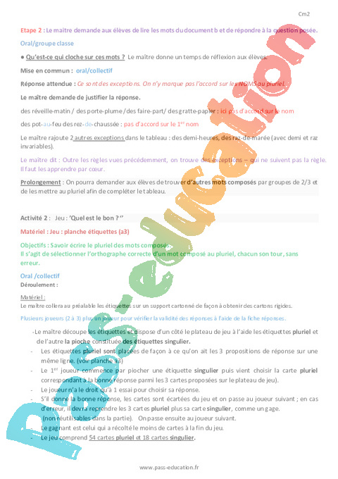Le pluriel des mots composés : Primaire 5 -Fiche de préparation rtf