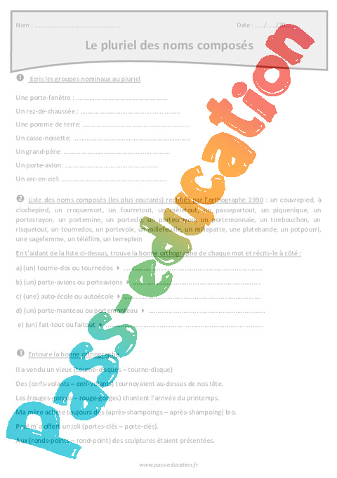 Correction – Pluriel des noms composés : Primaire 5 – Exercices pdf