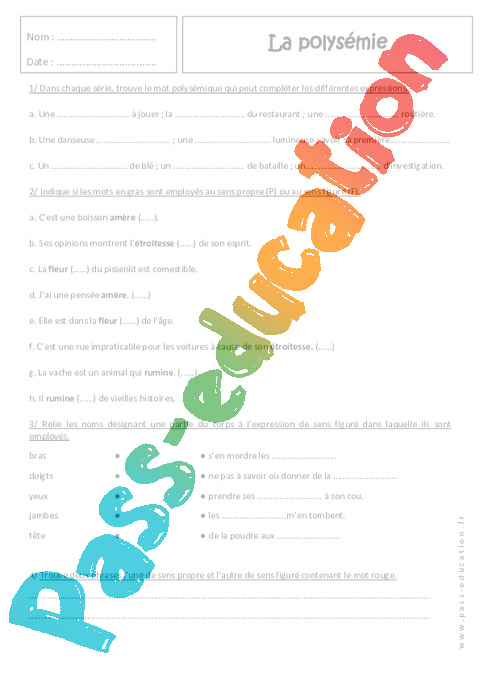 Polysémie : Secondaire 1 – Révisions – Sens propre ou figuré pdf