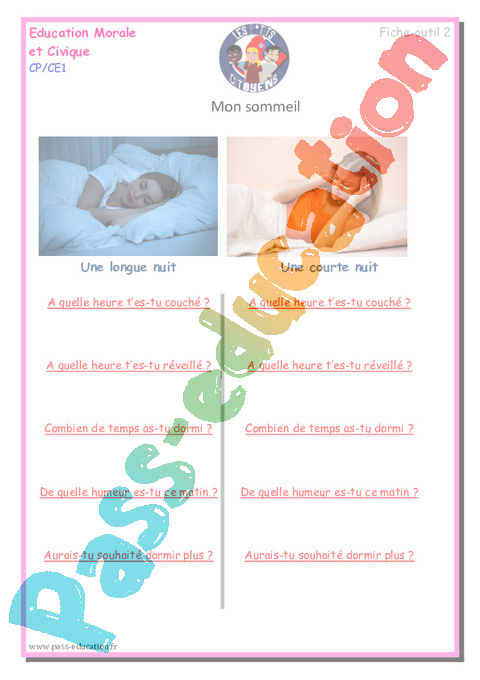 Fiche outil 2 – Questionnaire sommeil : Primaire 2 pdf