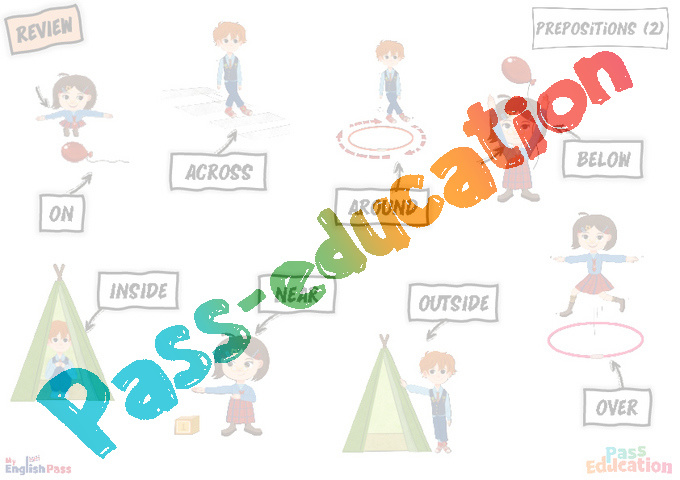 Leçon/Flashcard sur Apprends l’anglais avec Kelly and James : Prepositions (part 2) – : Primaire 1, 2, 3, 4, 5