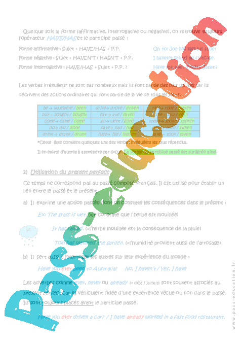 Formation du present perfect