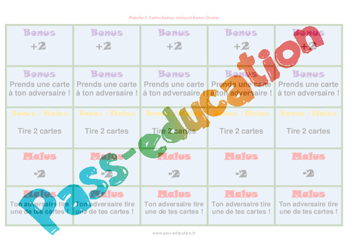 - Découpe les cartes de la planche 1 (verbes du 2e groupe) + carte bonus+ carte malus + carte bonus/ malus.