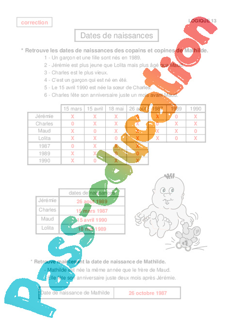 Sujet : Problèmes de logique : Primaire 4 – Mathématiques – Exercices et correction