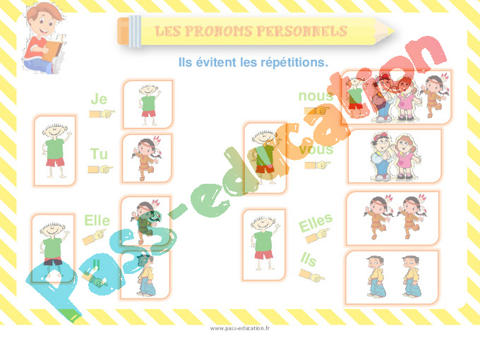 Affiche de classe sur « les pronoms personnels » en Primaire 1, 2