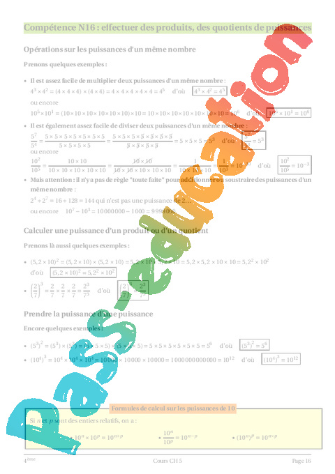 Sujet : Puissances : Secondaire 2 – Cours – Exercices : Secondaire 2 – Mathématiques