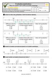 Intercaler des nombres sur une droite numérique. Evaluation numération :Placer les nombres de 0 à 199…