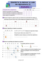 Bilan, évaluation à imprimer sur coder des déplacements en Primaire 3 Evaluation espace : coder des déplacements Compétences évaluées