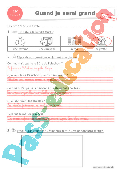 Correction Questionnaire Quand je serai grand : Primaire 1 – Luminéo – Niveau 3 pdf