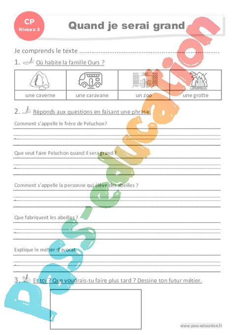 Questionnaire Quand je serai grand : Primaire 1 – Luminéo – Niveau 3 pdf