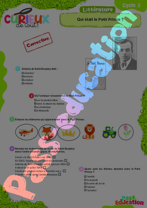 Correction Qui était le Petit Prince : Primaire 4, 5, 6 – Curieux de tout pdf