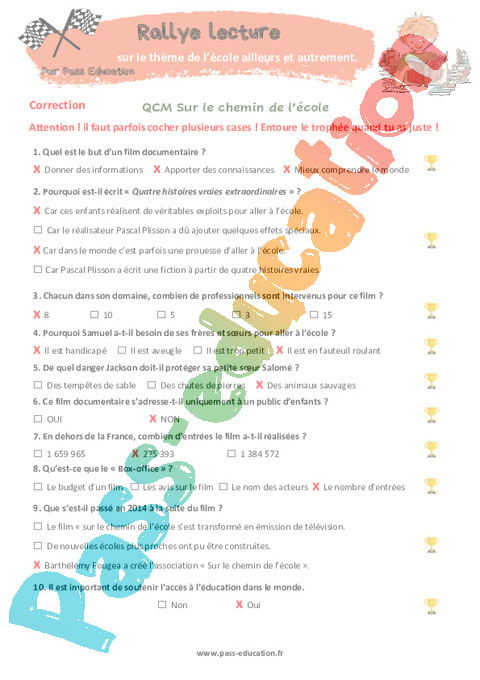 Doc 2 c QCM Sur le chemin de l’école pdf