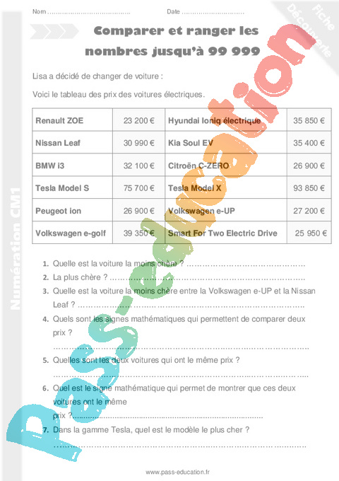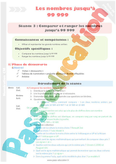 Fiche de préparation : Primaire 4 -Ranger les nombres jusqu’à 99 999 pdf