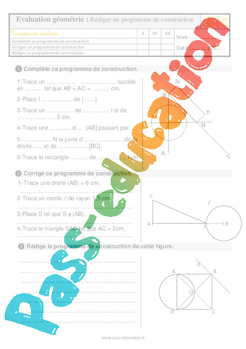 Évaluation géométrie : rédiger ou compléter un programme de construction