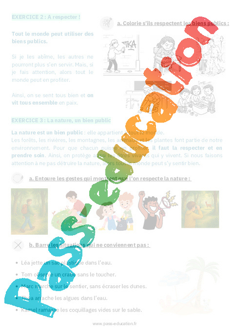 Exercices sur respecter les équipements et les biens publics : Primaire 1 – EMC Education morale et civique.