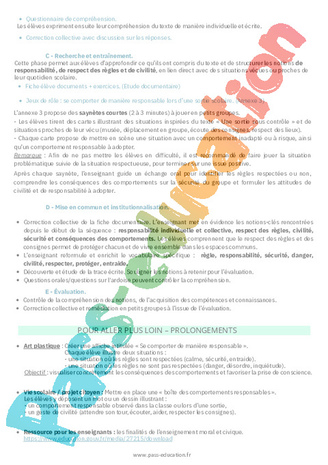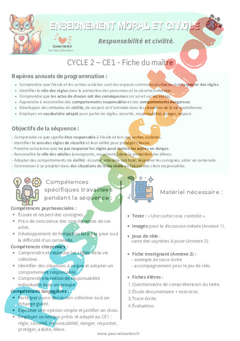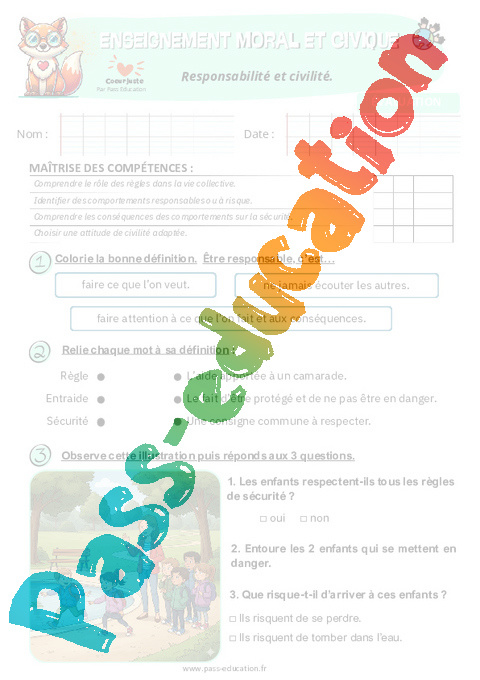 Fiche de préparation – Responsabilité et civilité : Primaire 2 – EMC Education morale et civique.