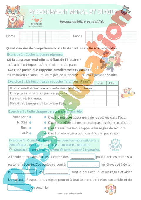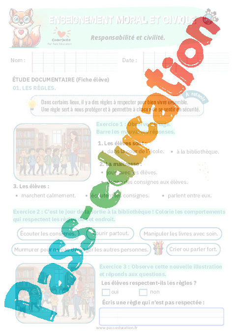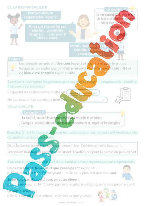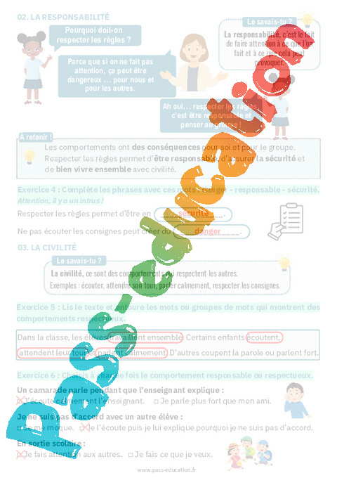 4. Fiche élève Responsabilité et civilité : Primaire 2 pdf