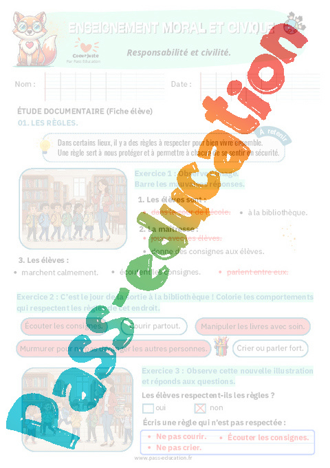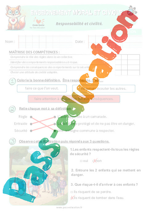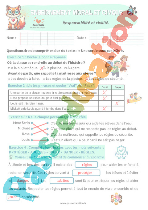 4. Correction Fiche élève Responsabilité et civilité : Primaire 2 pdf