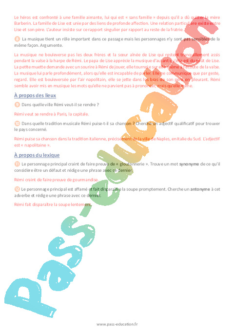 Correction Questionnaire Sans famille (Hector Malot) : Secondaire 1 pdf