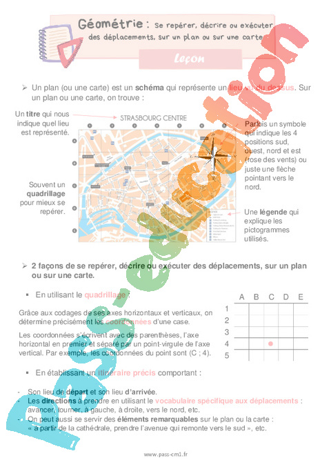 Leçon de géométrie sur se repérer, décrire ou exécuter des déplacements, sur un plan ou sur une carte : Primaire 4 .