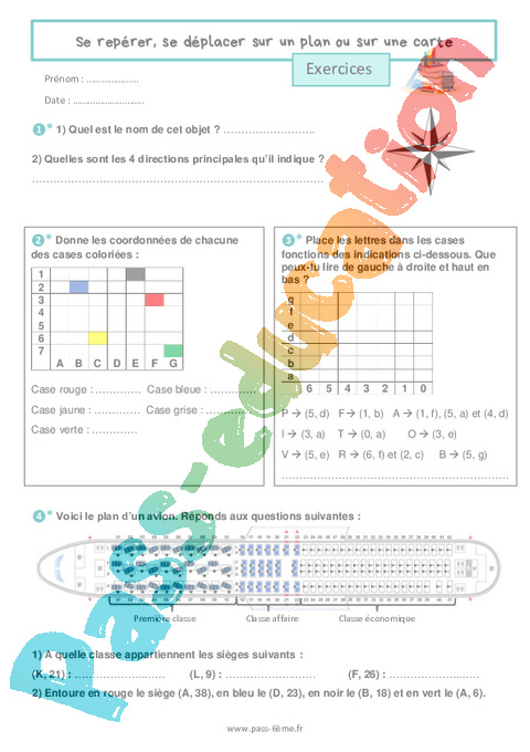 Exercices 6ème Se repérer, se déplacer sur un plan ou sur une carte pdf