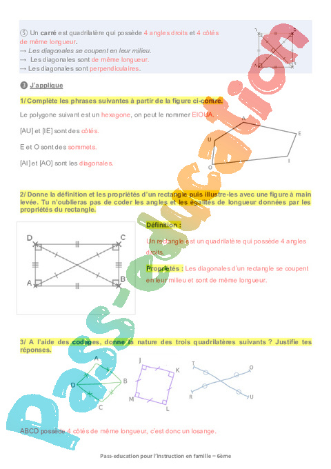 Quadrilatères particuliers – Géométrie plane – Maths 6e