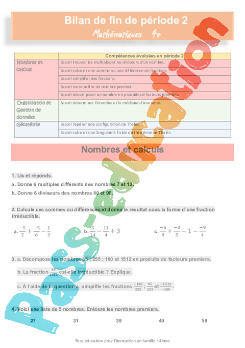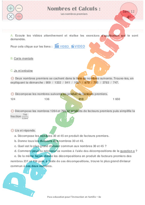 1 a Nombres et calculs : Secondaire 2 Les nombres premiers Semaine 12 IEF pdf