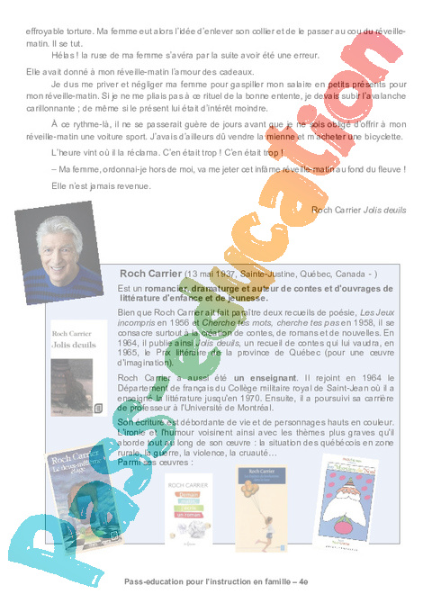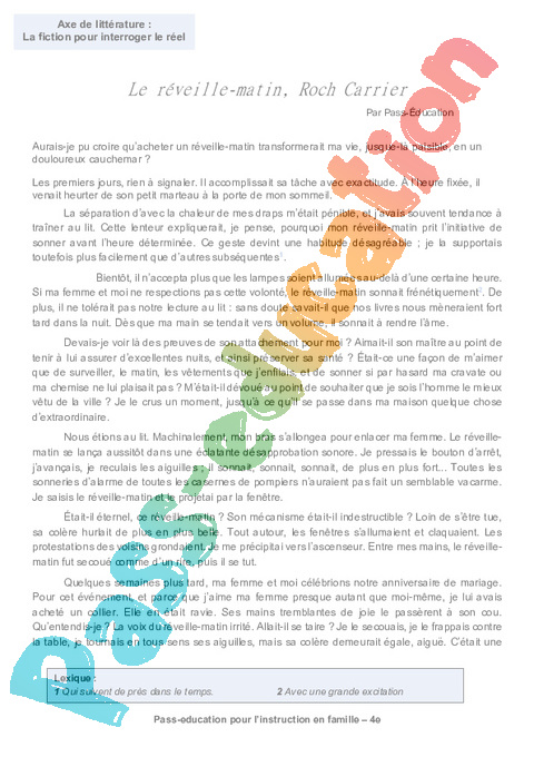 Texte 2 : Le réveille – matin de Roch Carrier