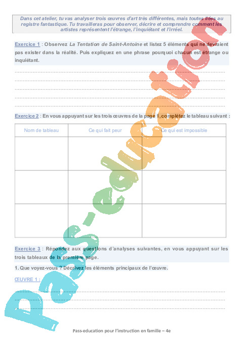 3 Atelier de lecture le fantastique dans l’art Semaine 12 IEF : Secondaire 2 pdf
