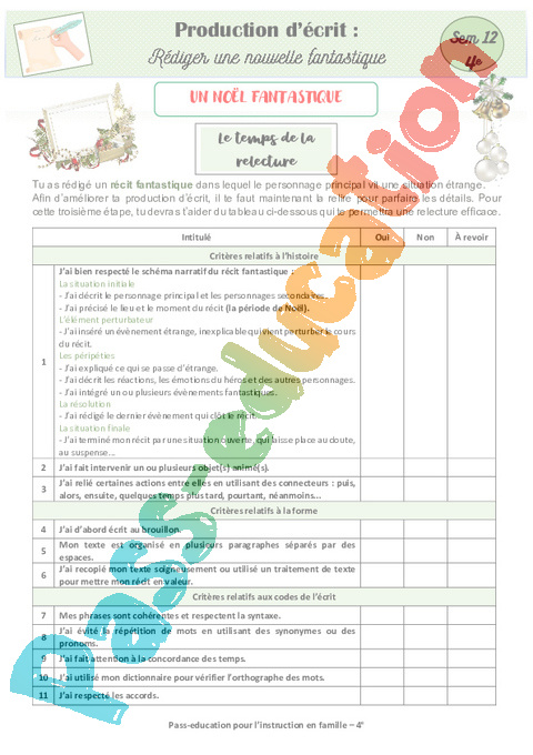4 Expression écrite-fantastique-Noel-relecture Semaine 12 IEF : Secondaire 2 pdf