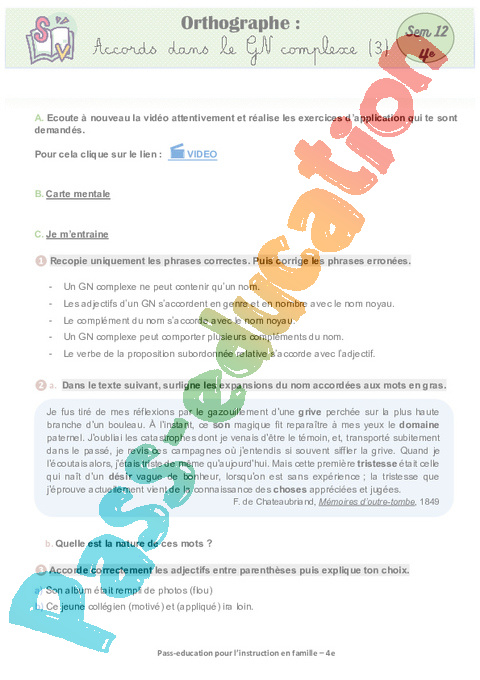 5 a Orthographe- Accords dans le GN complexe (3) Semaine 12 IEF : Secondaire 2 pdf