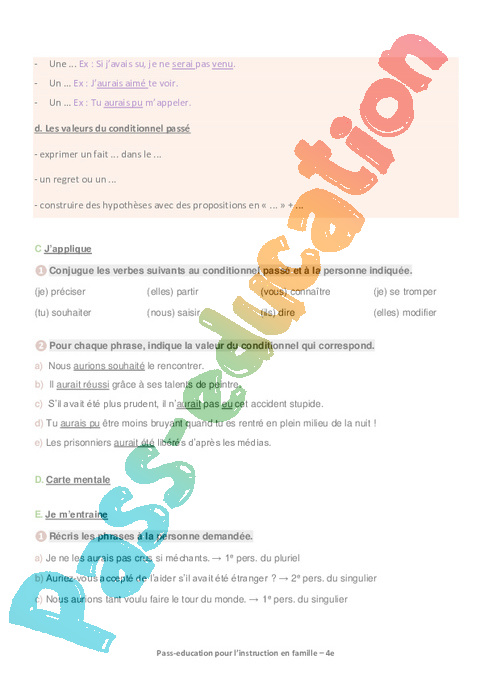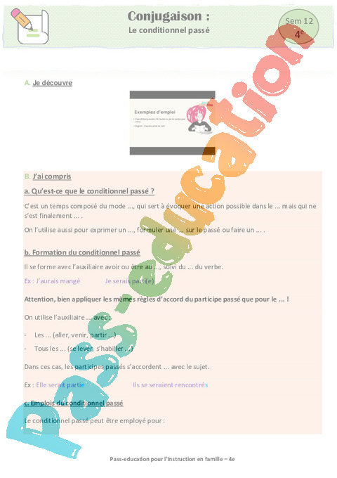 6 a Conjugaison- Le conditionnel passé Semaine 12 IEF : Secondaire 2 pdf