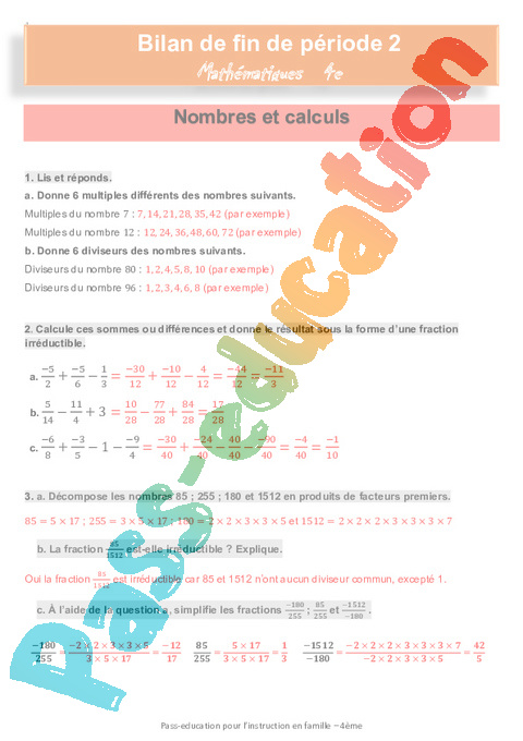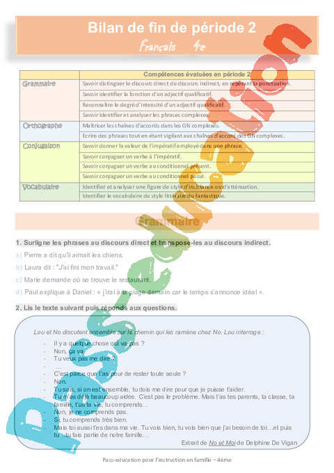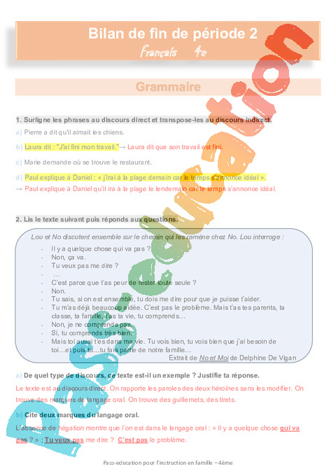 Correction Bilan Période 2 français IEF : Secondaire 2 pdf