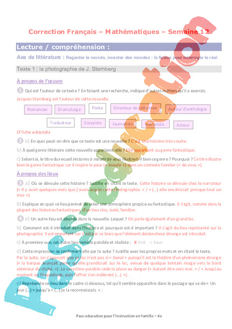 Corrections Semaine 12 IEF : Secondaire 2 pdf