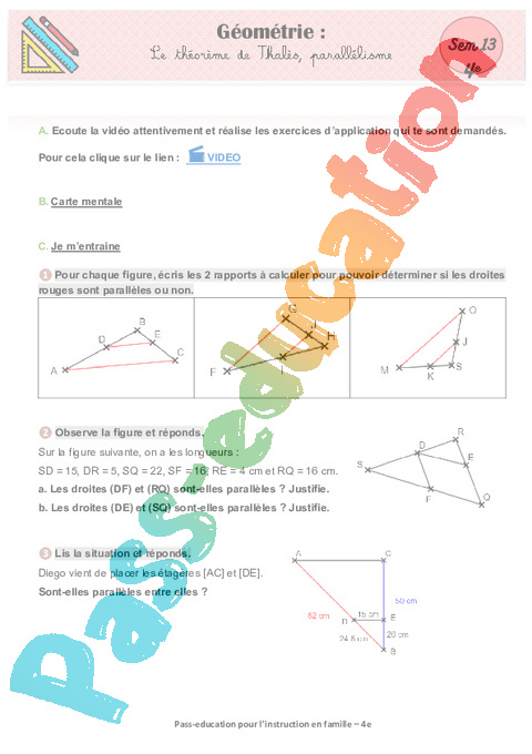 1 a Géométrie – Le théorème de Thalès et parallélisme Semaine 13 IEF : Secondaire 2 pdf