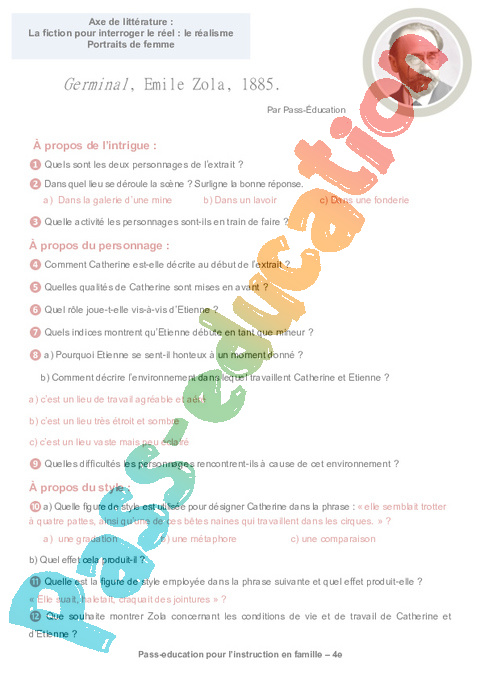 2b Questionnaire Germinal Zola Semaine 13 IEF : Secondaire 2 pdf