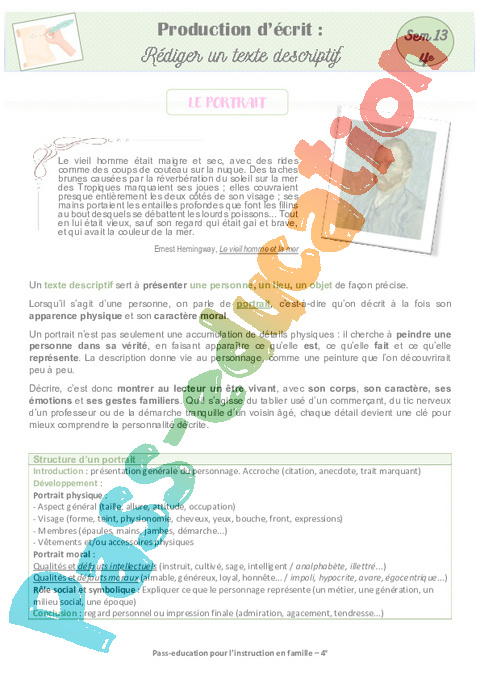 4 Expression écriture texte descriptif portrait Semaine 13 IEF : Secondaire 2 pdf