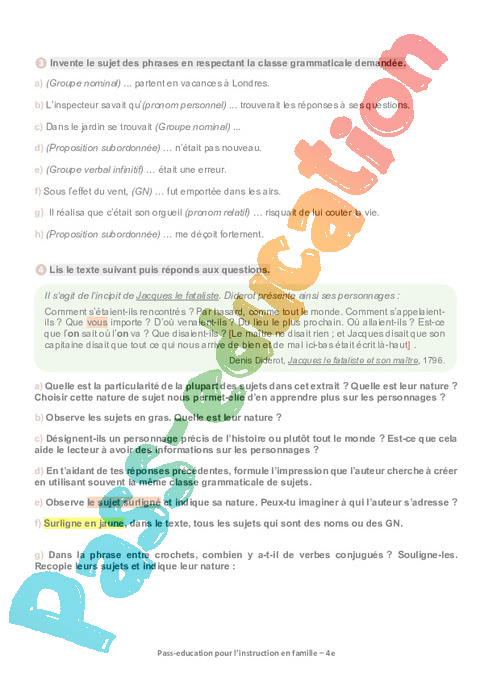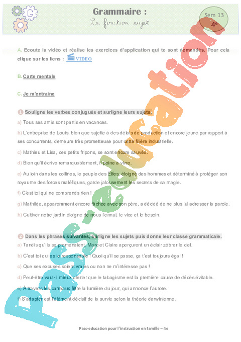 5 a- Grammaire – La fonction sujet Semaine 13 IEF : Secondaire 2 pdf