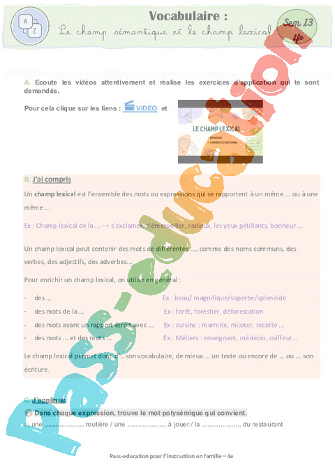 6 a Vocabulaire- Le champ sémantique et le champ lexical Semaine 13 IEF : Secondaire 2 pdf
