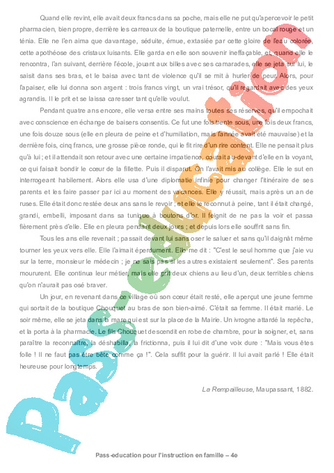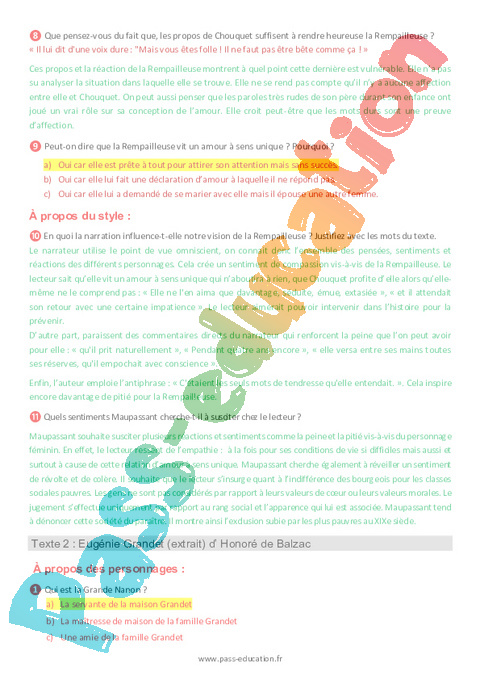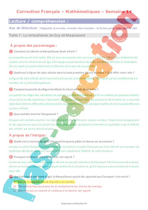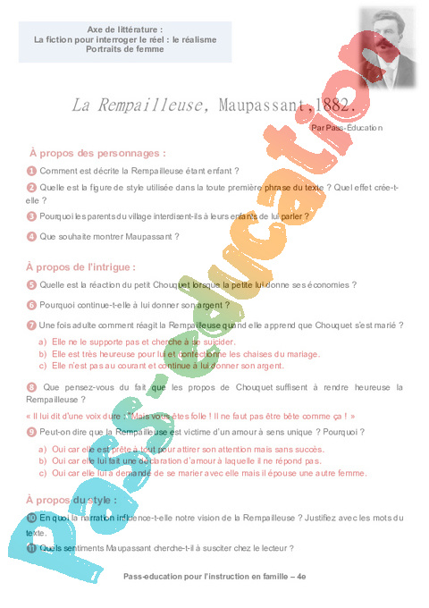 1b – Questionnaire La Rempailleuse, Maupassant semaine 14 IEF : Secondaire 2 pdf