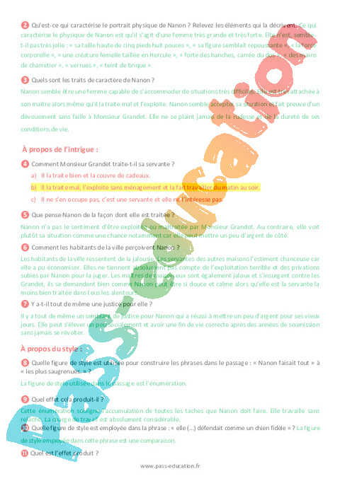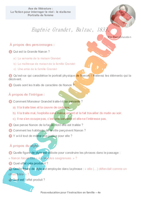 2b – Questionnaire Eugénie Grandet, Balzac semaine 14 IEF : Secondaire 2 pdf