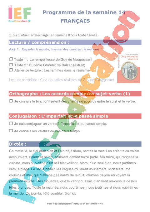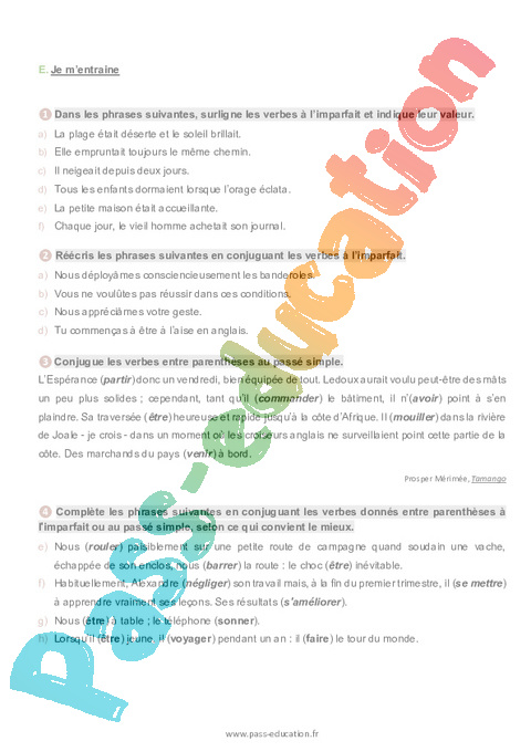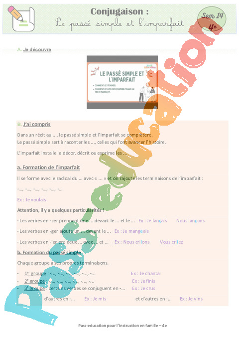 6 a Conjugaison – Le passé simple et l’imparfait semaine 14 IEF : Secondaire 2 pdf