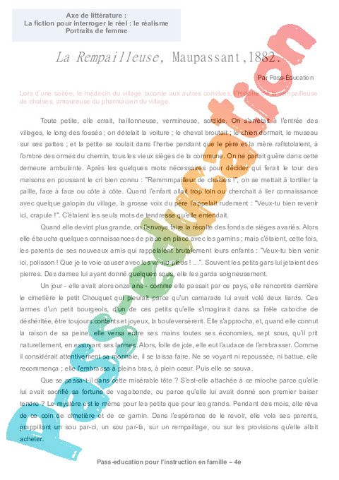 1a – La Rempailleuse, Maupassant semaine 14 IEF : Secondaire 2 pdf