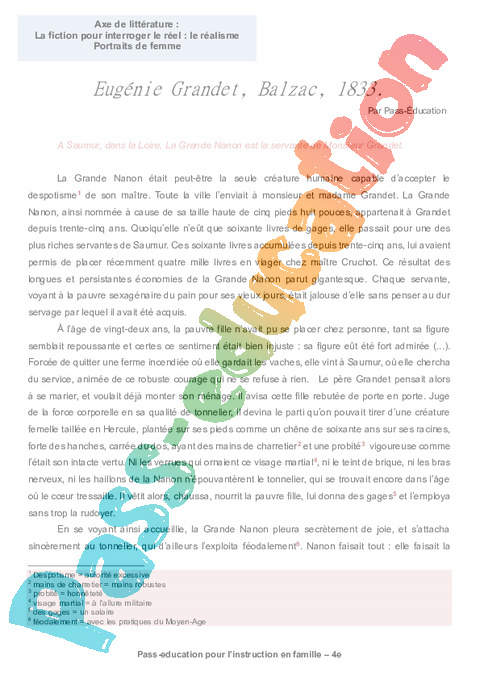 2a – Eugénie Grandet, Balzac semaine 14 IEF : Secondaire 2 pdf