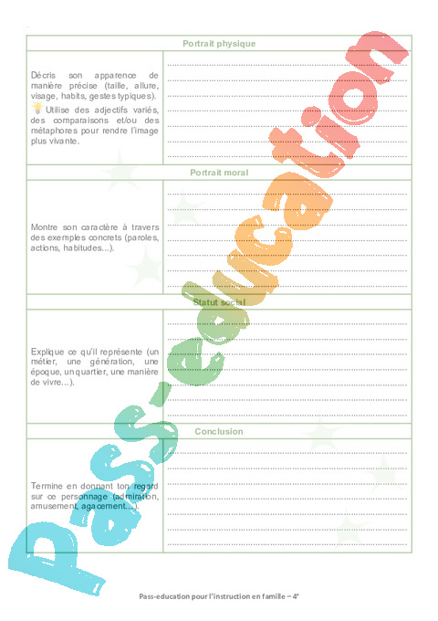 Rédiger un portrait en tenant compte des critères exigés.