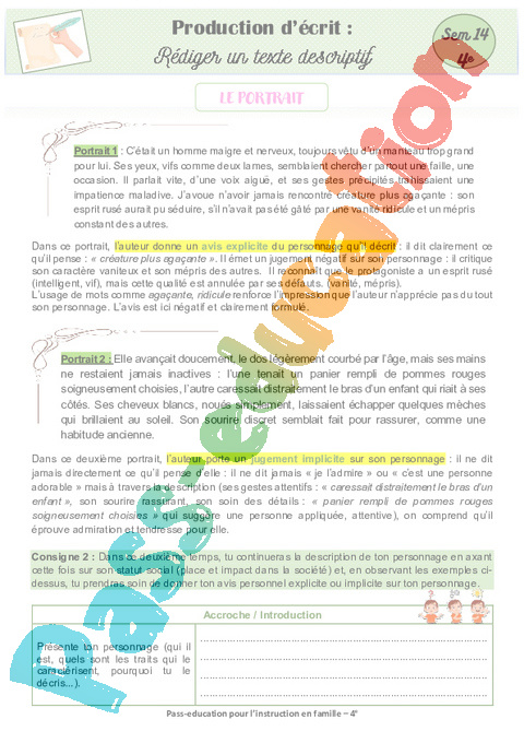 4 Expression écriture texte descriptif portrait 2 semaine 14 IEF : Secondaire 2 pdf