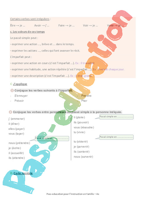6 b- Carte mentale – Le passé simple et l’imparfait semaine 14 IEF : Secondaire 2 pdf