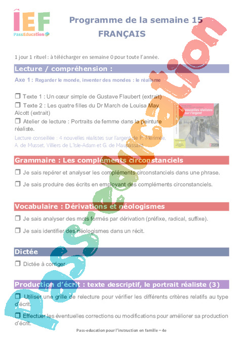 0 programme semaine 15 école à la maison IEF : Secondaire 2 pdf