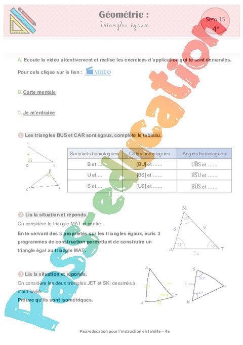 1 a Géométrie – Triangles égaux semaine 15 école à la maison IEF : Secondaire 2 pdf